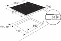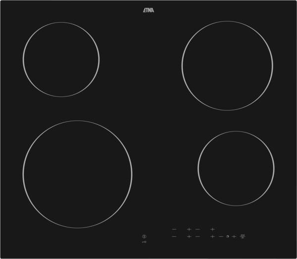 Glaskeramische kookplaat, Bediening voorzijde, Touch Control bediening, 4 Keramische kookzone(s), 9 Standen, Warmhoudfunctie, Kookwekker, Timer, netto breedte: 59,5 cm, netto diepte: 52 cm