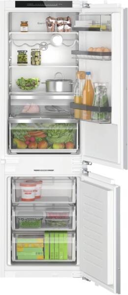 Inbouw-koel-/vrieskombinatie, Vaste deur montage, 184 l Inhoud koelgedeelte, waarvan VitaFresh, Automatisch ontdooisysteem koelgedeelte, Superkoelen, Flessenplateau/rek (liggend), 3 Glasplateaus, 76 l Inhoud vriesgedeelte, 3 Lade, VarioZone, NoFrost, Digitale temperatuurweergave, Koel-/vriesgedeelte apart regelbaar, Energieklasse D, netto breedte: 55,8 cm, netto hoogte: 177,2 cm, netto diepte: 54,8 cm