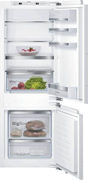 Inbouw-koel-/vrieskombinatie, 169 l Inhoud koelgedeelte, Superkoelen, 1, 4 Glasplateaus, 62 l Inhoud vriesgedeelte, 1 Lade, BigBox [XXL]:1, Touch-functie, Digitale temperatuurweergave, Koel-/vriesgedeelte apart regelbaar, Energieklasse E, netto breedte: 55,8 cm, netto hoogte: 157,8 cm, netto diepte: 54,5 cm