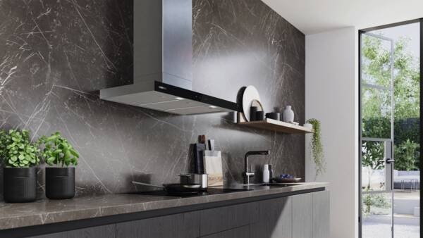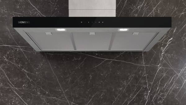 Schouwkap, Afvoer, Om te bouwen naar / geschikt voor recirculatie, 3 Standen, Intensief stand, Nallooptijd, 10 Minuten, maximale luchtafvoer: 699 m³/h, maximale luchtrecirculatie: 677 m³/h, Touch Control bediening, LED verlichting, Dimbaar, aantal lampen: 2, Metaal vetfilter, Geschikt voor vaatwasser, IQDrive motor, Via app ondersteunde gegevensoverdracht, Via app te bedienen, Voice control, Energieklasse A++, Go Green criteria, netto breedte: 89,8 cm