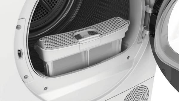 Warmtepompdroger, Geschikt voor onderbouw, Schuin bedieningspaneel, 9 kg Vulgewicht, SoftDry trommel, Eindtijd keuze, Bijvulfunctie, LED-Display, Programmaverloop weergave, Resttijdaanduiding, Opfrissen, Lingerie, Kreukherstellend, Iron Assist, Korf drogen, Tijdprogramma, Beladingsadvies, LED trommelverlichting, Zelfreinigende Condensor, Condenswaterafvoer, Home Connect (bediiening via Smartphone of Tablet mogelijk), Via app ondersteunde gegevensoverdracht, Via app te bedienen, Voice control, compatible met Amazon Alexa, Google Assistant, Droogkorf, Energieklasse C, netto breedte: 59,8 cm, netto hoogte: 84,2 cm, netto diepte: 59,9 cm